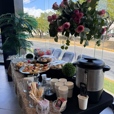 Ideal para recepciones, inauguraciones, juntas empresariales y celebraciones íntimas. Nos encargamos de cada detalle para que solo disfrutes.
